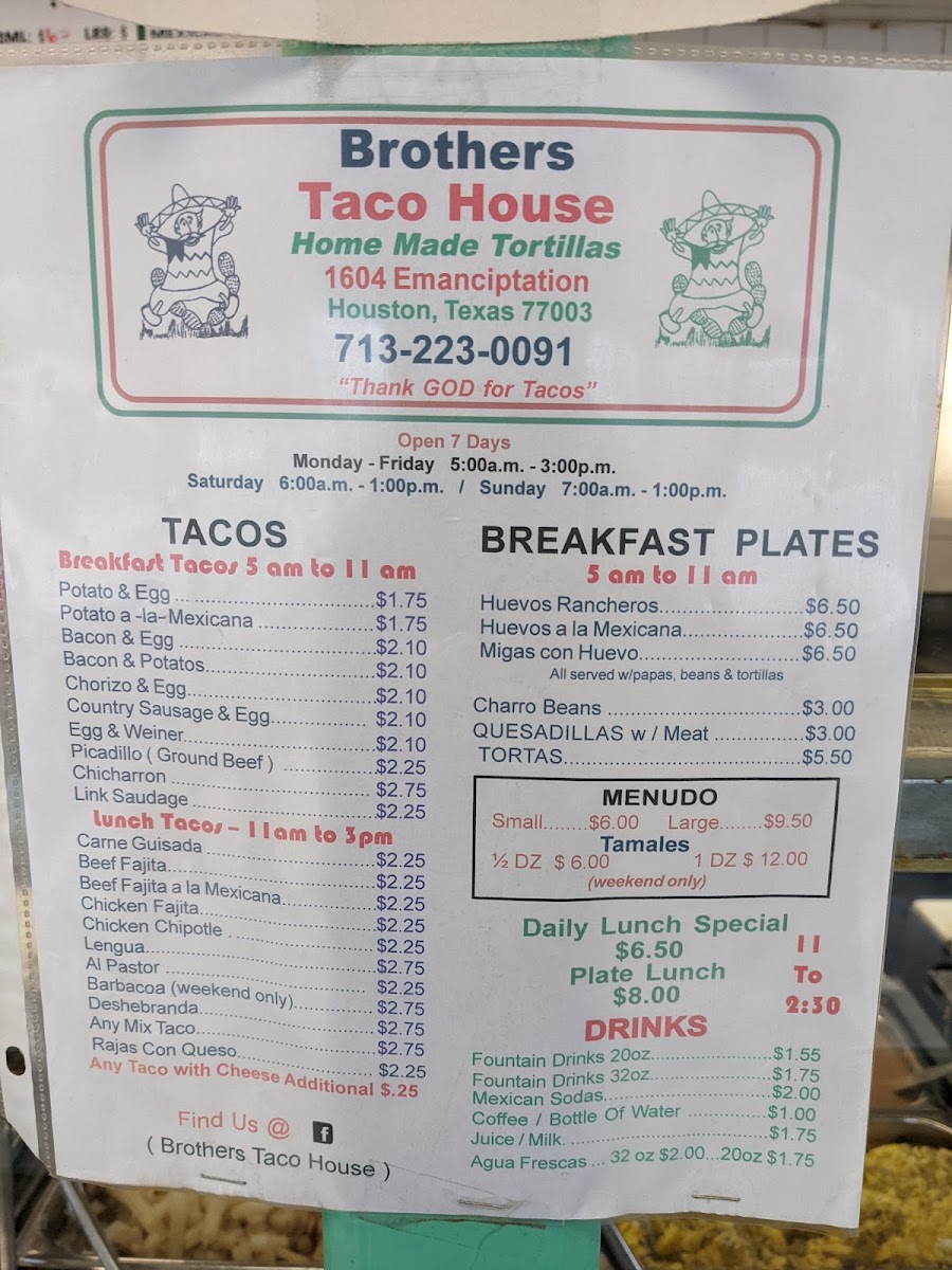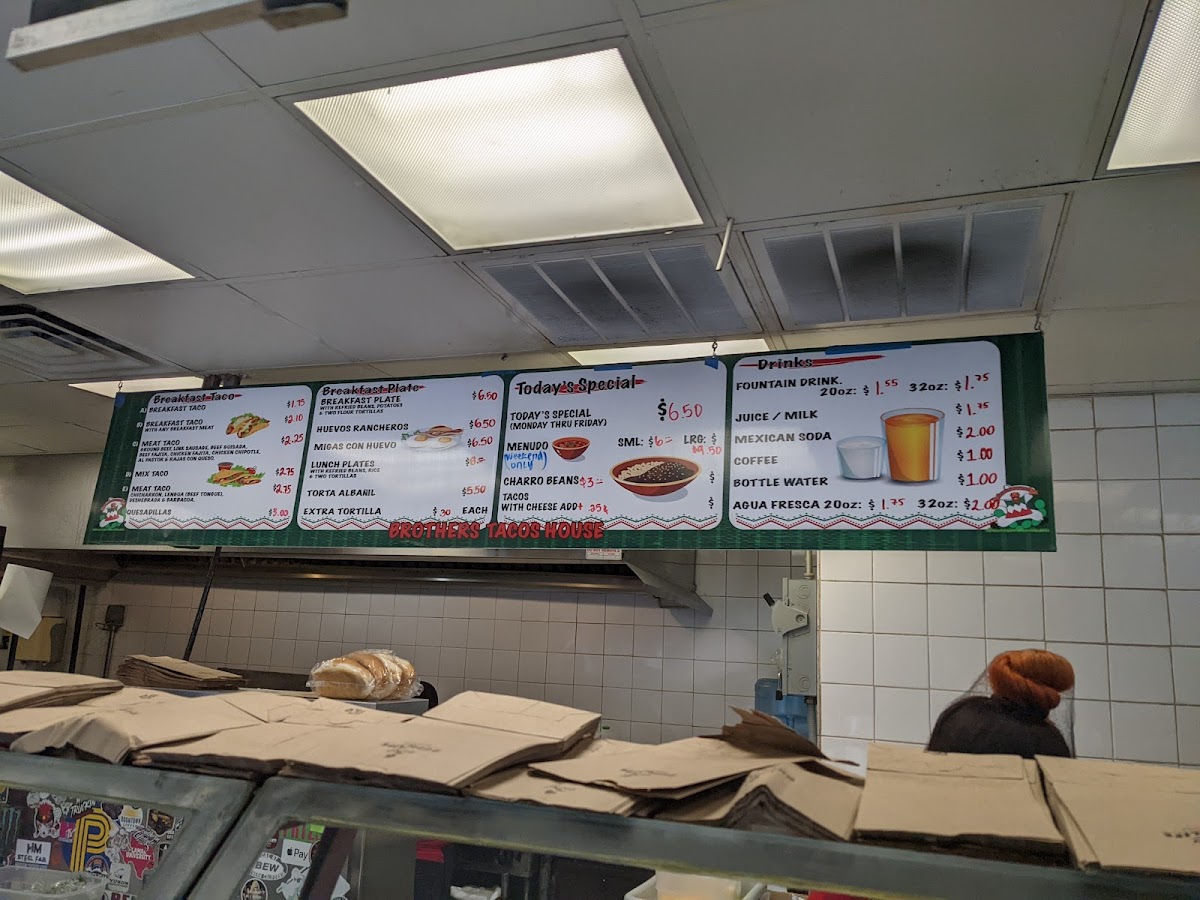 I like this place, in an area of town that has great tacos on every corner. Brothers is definitely a must try. Not much English is spoken, but you can point out, and they know what you want. Plus prices are cheaper than other places. Prepare to wait in line.